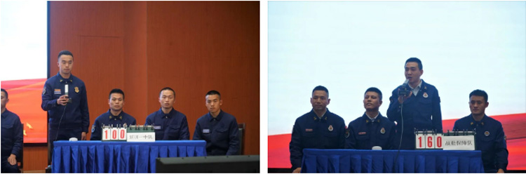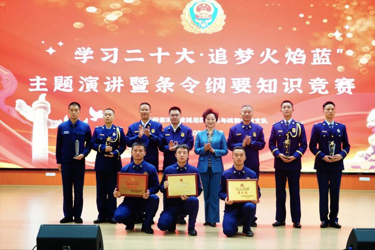 此次活動采取現場演講和知識競賽的形式進行。在黨的二十大精神暨條令綱要知識競賽環(huán)節(jié),由訓保支隊機關、新訓大隊組成的5個參賽隊,圍繞黨的二十大精神知識點、條令綱要內容,通過必答、搶答、風險、加賽四個競賽環(huán)節(jié)進行角逐。賽場上,選手們精神飽滿、團結協作、沉著應答,活動現場氣氛緊張活躍、扣人心弦,引來了場下觀眾陣陣掌聲。在主題演講環(huán)節(jié)中,5名參賽隊員緊扣主題,結合學習黨的二十大精神所思所悟,從身邊人、身邊事講起,用一個個扣人心弦的感人故事、一幕幕赴湯蹈火的戰(zhàn)斗場景、一句句感人肺腑的質樸話語,真情講述了消防救援隊伍竭誠為民的初心使命,充分展現了新時代消防救援隊伍的嶄新風貌!最后,通過激烈的爭奪,四中隊、三中隊、一中隊分別榮獲知識競賽第一名、第二名、第三名,蔣傳玉、劉麟、吳潔熠分別榮獲主題演講冠軍、亞軍、季軍。